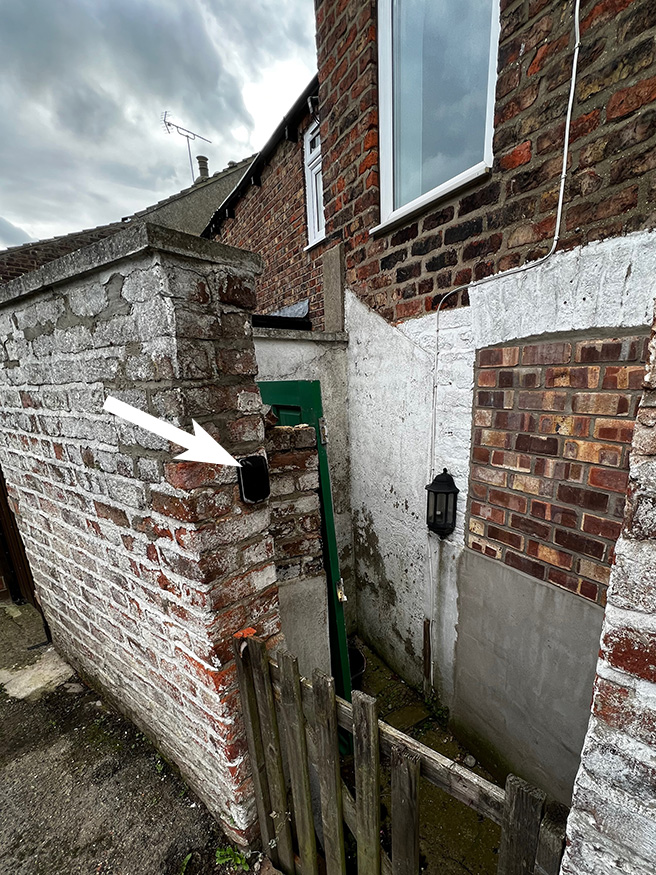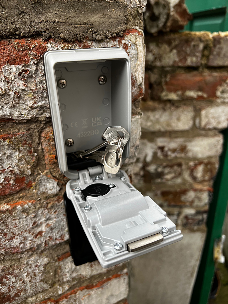 If there is a problem getting into the flat using the external keypad, there is a lockbox at the rear of the building with a key for door #2